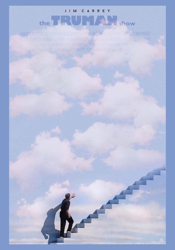 영화 트루먼 쇼는 평화로운 마을 정확히 세트장 안에서 30년간 살아온 트루먼의 이야기입니다. 보험회사 직원인 ‘트루먼 버뱅크’는 그의 출생부터 모든 순간이 한시도 빠짐없이 크리스토프가 감독하는 수천 대의 카메라로 방송이 되고 있었습니다. 어느 날 트루먼은 특정 시간대에 같은 사람들을 만난다던가 일상 속 감정의 분위기와 무관하게 광고되는 것들이 눈에 보여 자신의 삶이 자연스럽지 않다는 것을 느낍니다. 그가 이러한 발견을 할수록 크리스토프는 그가 다시 일상으로 안주하도록 가짜의 이야기와 사건들을 계속 만들어갑니다. 하지만 이런 크리스토프의 통제에도 불구하고, 트루먼은 일련의 사건들을 겪게 되며 자신의 삶에 의심을 하면서 트루먼은 카메라를 속이고 비밀 터널을 통해 탈출합니다. 크리스토프는 사상 처음으로 쇼를 중단하지만 이에 따라 쇼의 시청률이 급등하고 모든 배우와 제작진들은 트루먼을 찾습니다. 트루먼이 배를 타고 탈출을 하자 그에게 있는 물공포증을 이용하여 트루먼이 거의 익사 상태까지 가지만 그의 투지를 막지 못해 결국 크리스토프가 폭풍우를 끝내도록 합니다. 트루먼은 정신을 차리고 가짜 하늘을 가르고 바다를 건너 실제 하는 비상구를 통해 스튜디오 밖으로 나가면서 그는 ‘진짜’ 주체적인 삶과 사랑을 찾게 된다는 이야기입니다.